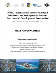 Descripción: Realizado del 31 de marzo al 2 de abril de 2014 en Cancún, México, este Seminario internacional ha sido organizado por el Comité Técnico 4.1 Gestión del Patrimonio Vial de la Asociación Mundial de la Carretera que ha reunido a profesionales del sector viario de los 31 estados de México y de 19 países de todo el mundo.