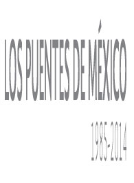 Descripción: Este libro hace un recorrido por 29 años de construcción de puentes en México, desde 1985 hasta el 2014, y finalizará con una visión a futuro de las nuevas estructuras que se construirán en nuestro país.